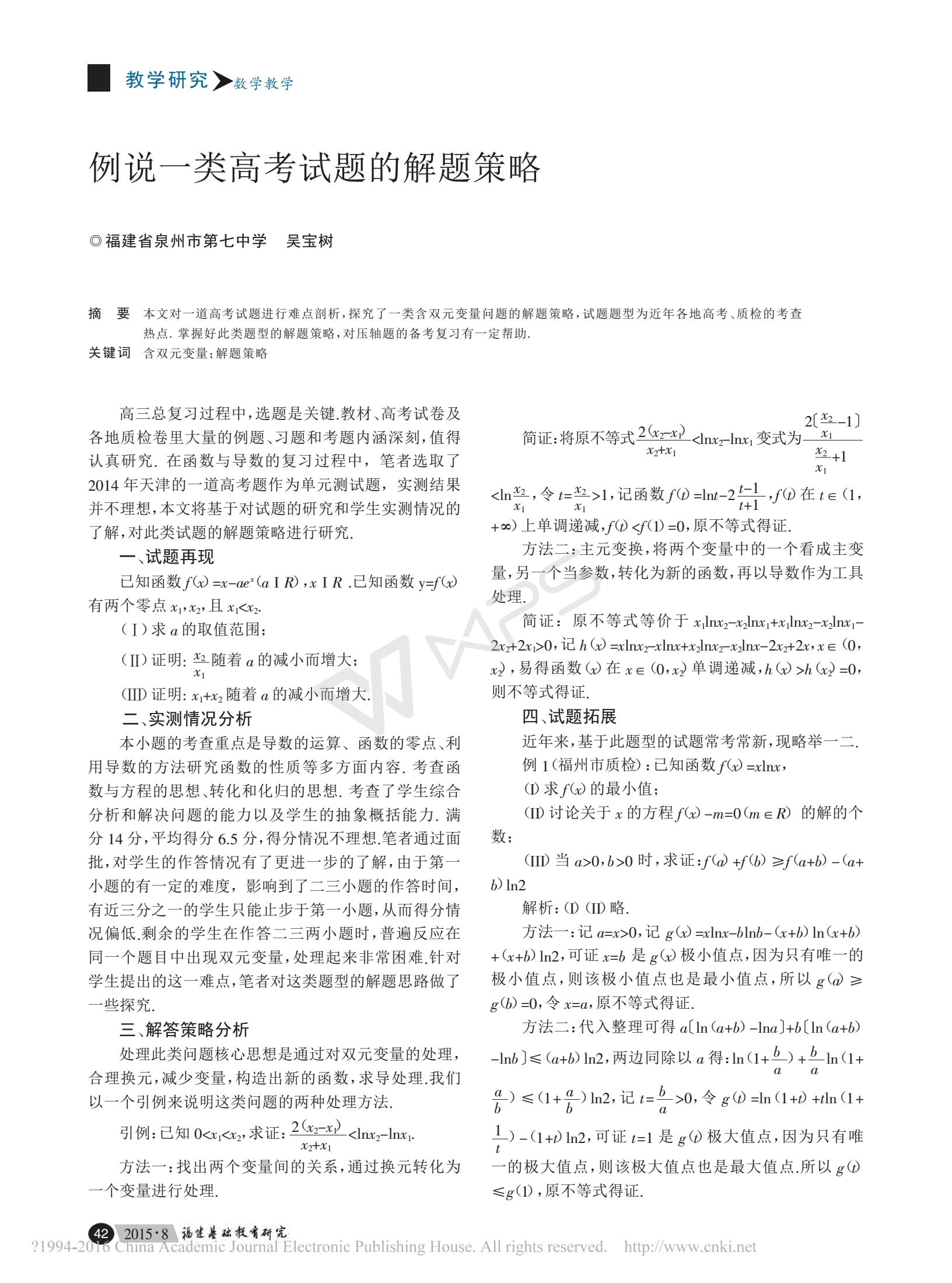 CN论文:对一道高考试题的再探究_彭耿铃