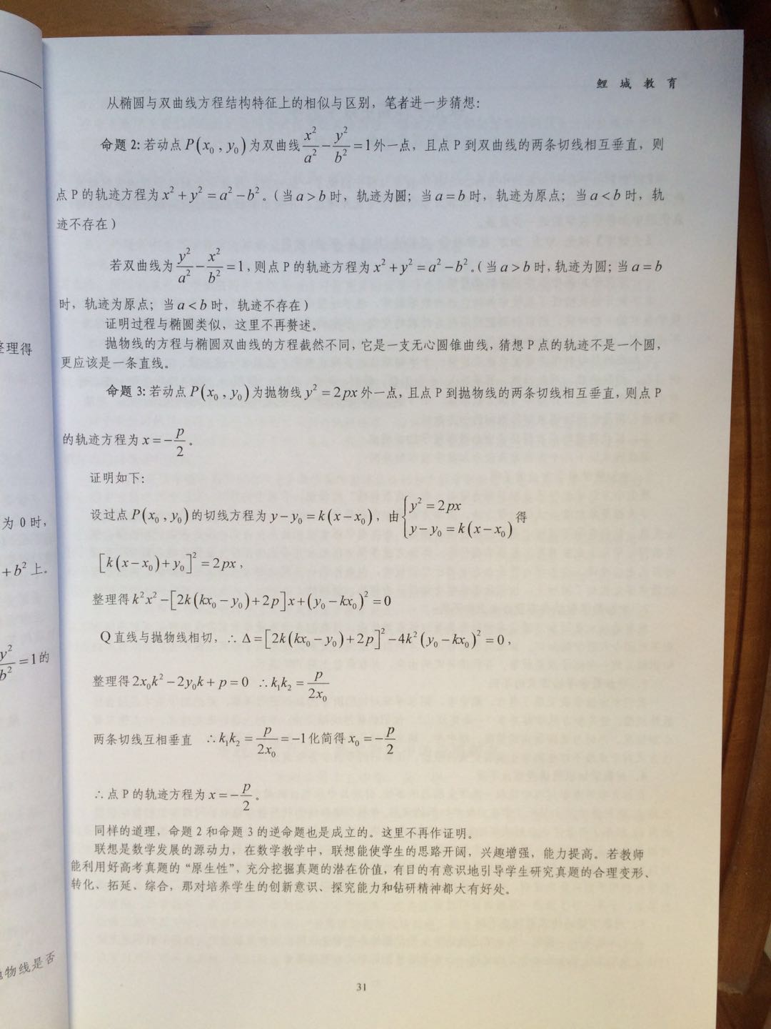 2014年广东高考卷圆锥曲线命题的推广