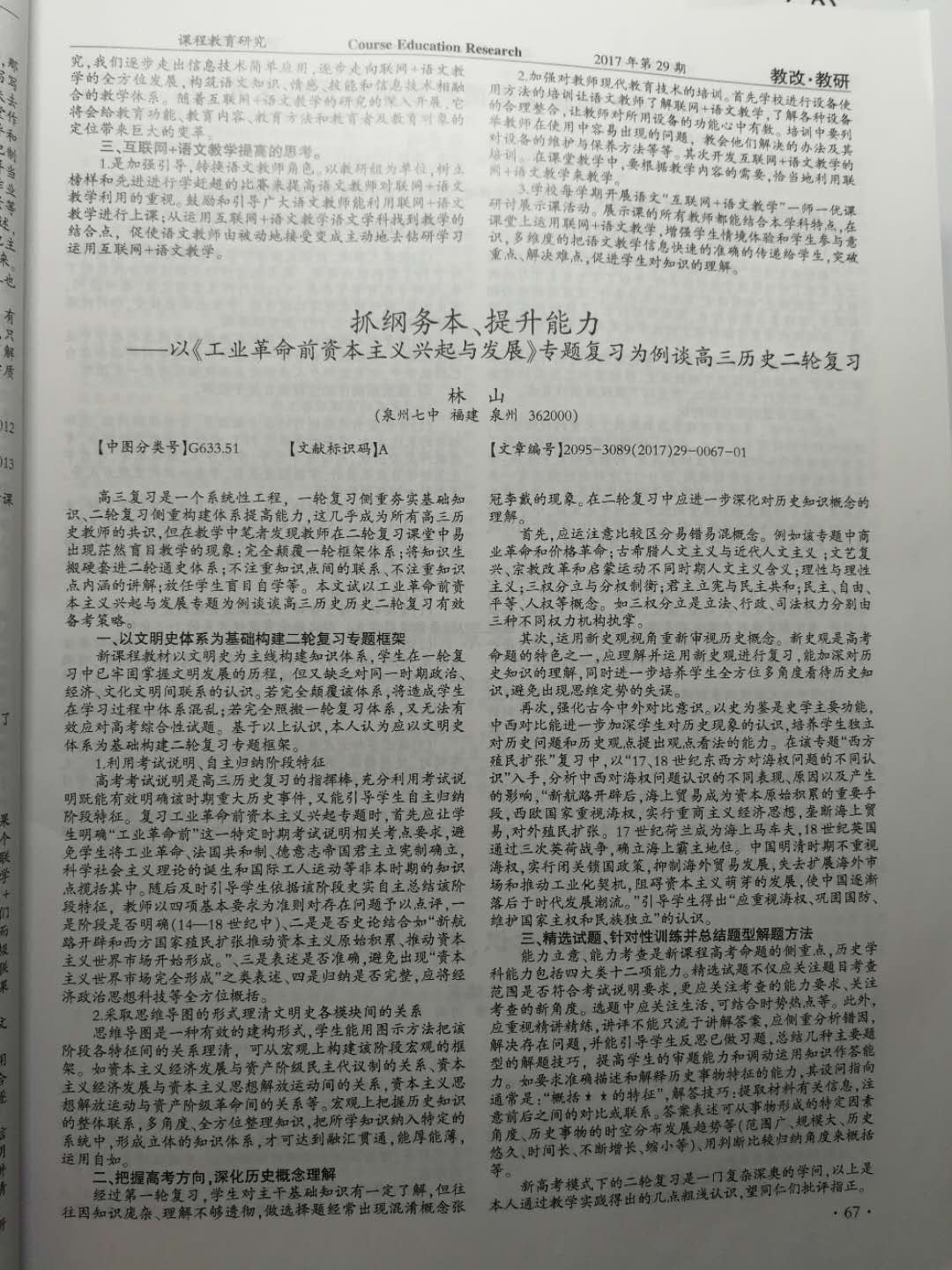抓纲务本、提升能力——以《工业革命前资本主义兴起与发展》专题复习为例谈高三历史二轮复习