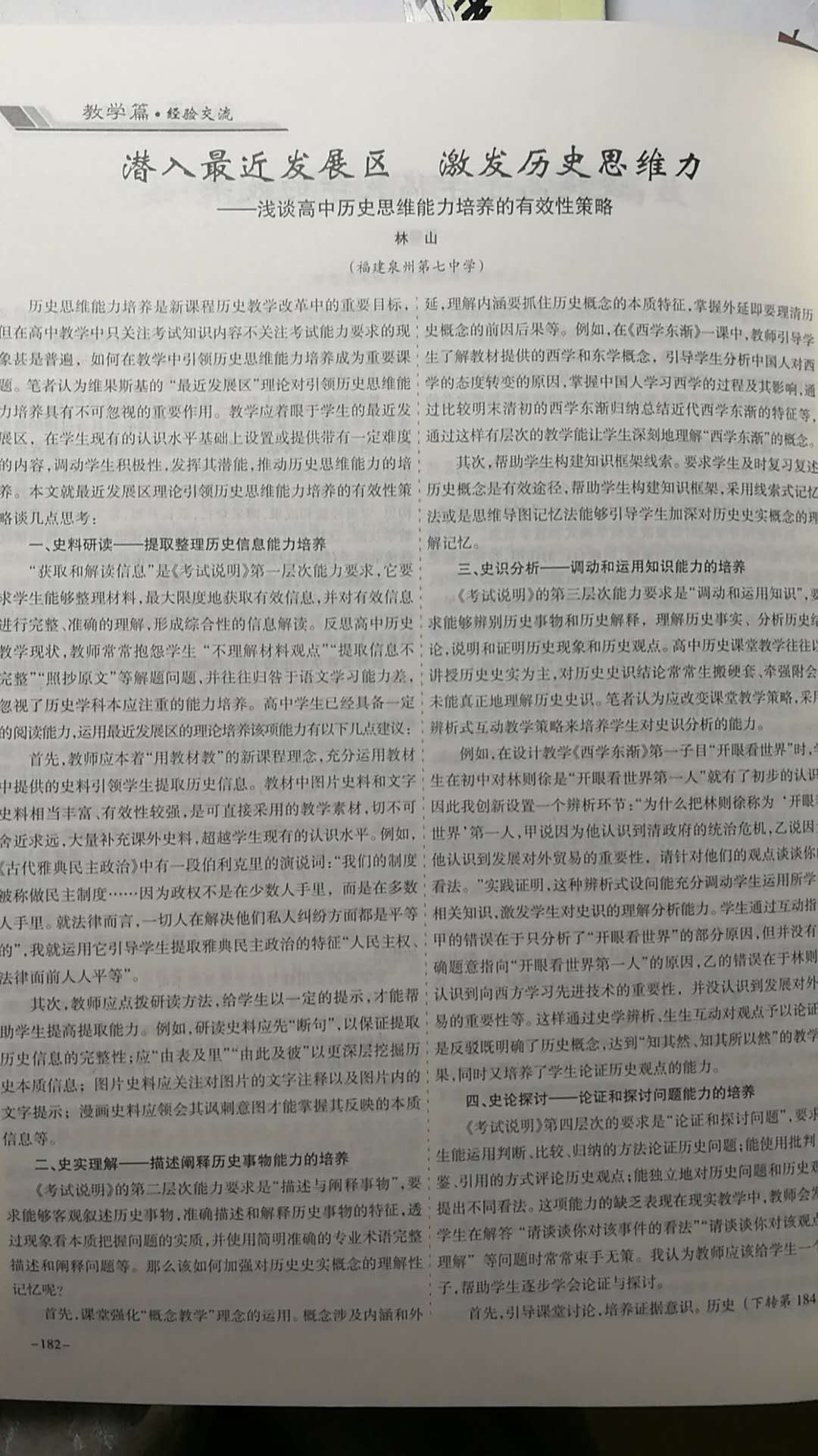 潜入最近发展区 激发学历史思维力——浅淡高中历史思维能力培养的有效性策略