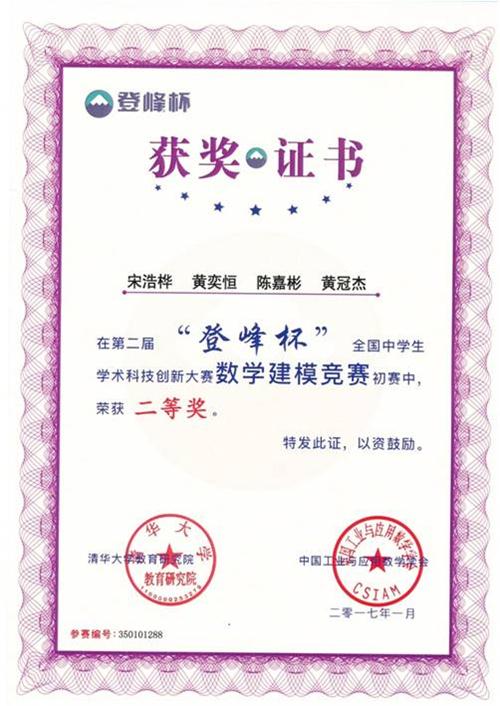 三、2017年“登峰杯”全国中学生学术科技创新大赛数学建模竞赛初赛二等奖