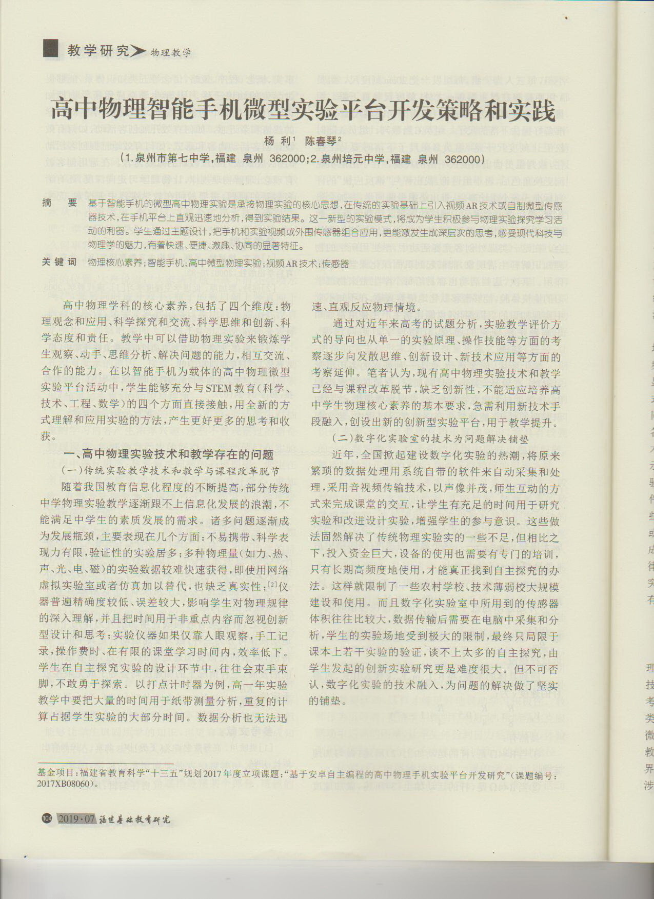 201907 杨利 《高中物理智能手机微型实验平台开发策略和实践》