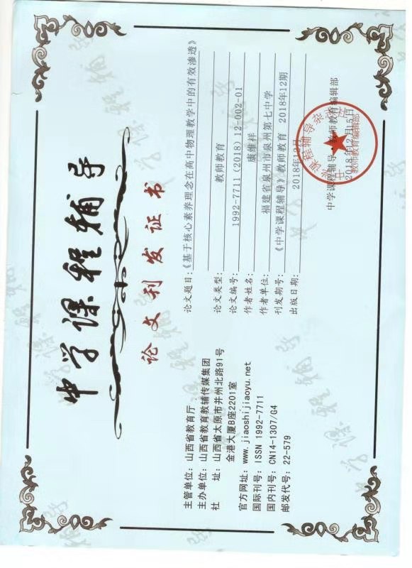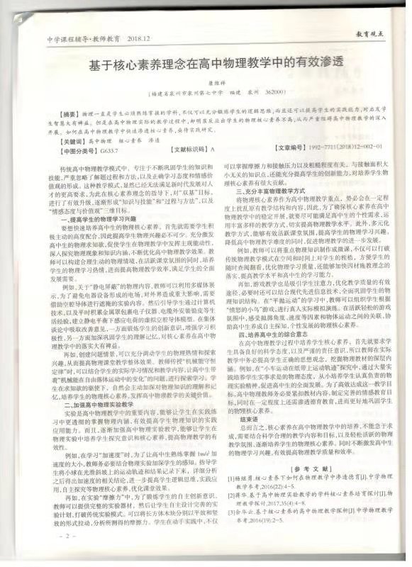 201812 康维祥 《基于核心素养理念在高中物理教学中的有效渗透》