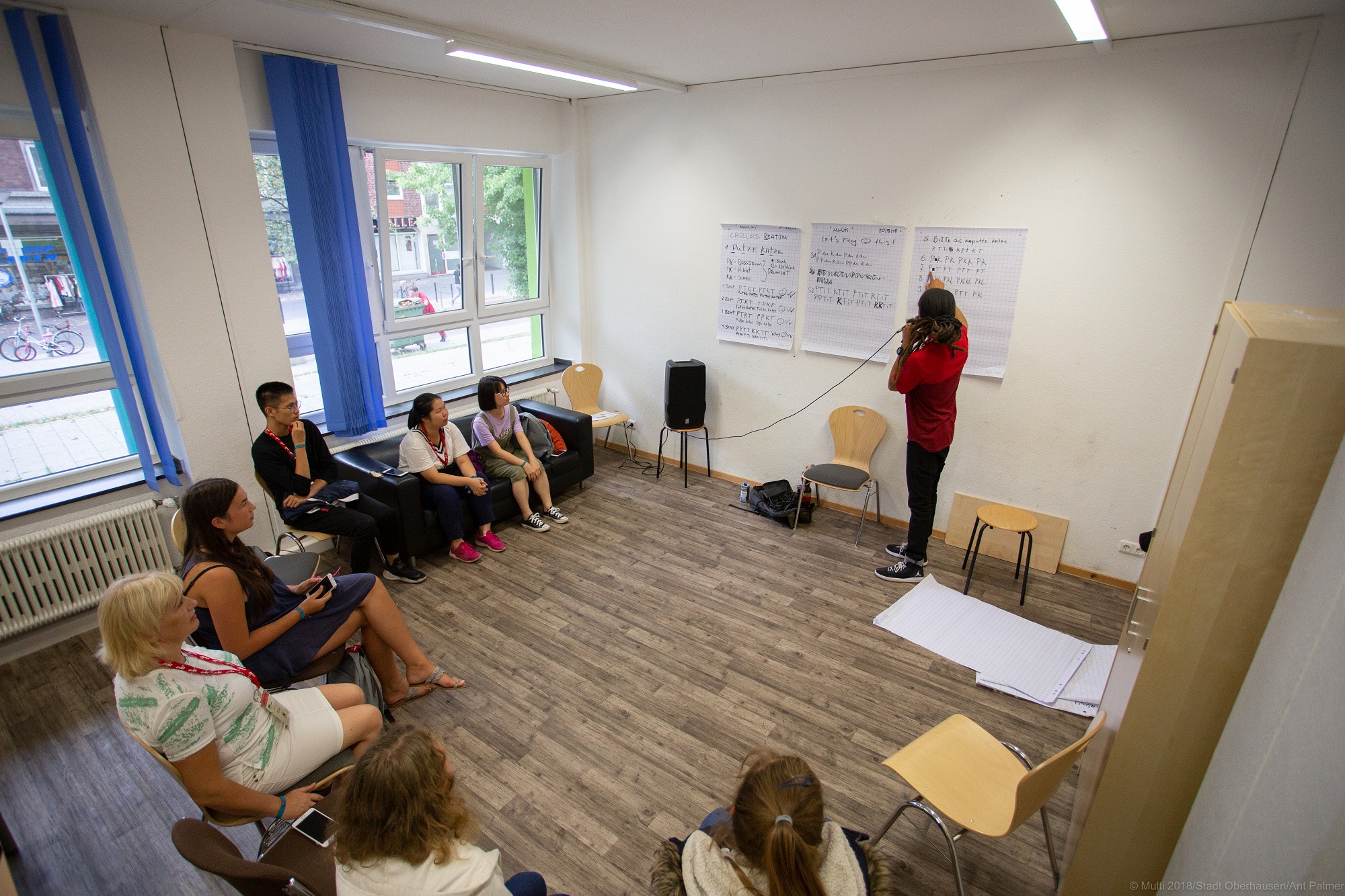 我想半个月以来最high的应该就是破冰派对了,所有的人一起在舞池里跳舞,那天晚上我也认识了很多外国的小伙伴,并交换了联系方式!这是我长这么大以来第一次参加这种派对,真的非常难忘。第二天的城市游戏,走了大半个奥伯豪森做游戏得贴纸,因为一直迷路所以只获得了七张贴纸,但沿路看了很多美丽的风景,也认识了同组的外国伙伴;Project day是好不容易换来的beatbox,虽然只学到了一点皮毛,但真的爱上了它。老师也非常的幽默风趣,课堂氛围很棒,每个人都有表现的机会,就算出现失误,老师也会给我们有效的指导和巨大的鼓励。课间休息的时候,我们还会互相教对方自己的母语。俄语和德语对于我来说真的是噩梦,我到现在都还不知道为什么他们的舌头可以转这么快;还有Move day我们讨论了关于联合国的17个可持续发展目标,一起看了宣传视频,一起讨论,一起做问卷,在这个过程中,我发现了自己在某些领域的短板,也看到了不同国家对同一问题的不同看法,学到了很多;在sport event的时候我们和外国朋友们一起进行了很多比赛,在这个过程拉近彼此的距离,构建国与国之间交流的桥梁。在那一天最大的看点应该就是足球比赛了,虽然是友谊赛但感觉到大家一样非常认真地在对待,Philip也曾告诉我足球是德国人生活中很重要的一部分;最触动我的应该是social day,那天我们去了peace village,去陪那里的孩子们玩耍,帮他们打扫院子,给他们创造快乐的一天。我很享受这个过程,但看到他们身上的伤,我感到非常的难过,同时也非常感恩自己生活在一个和平的国家,希望有一天在这个世界上能够永远没有战争!而随着social day的结束,我的德国之行也走进尾声。参加Multi2018是我做的最正确的决定,如果可以我还想参加,还想再回去,再去拥抱我最棒的朋友们!