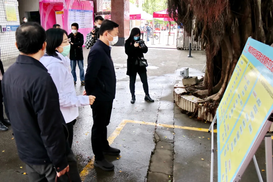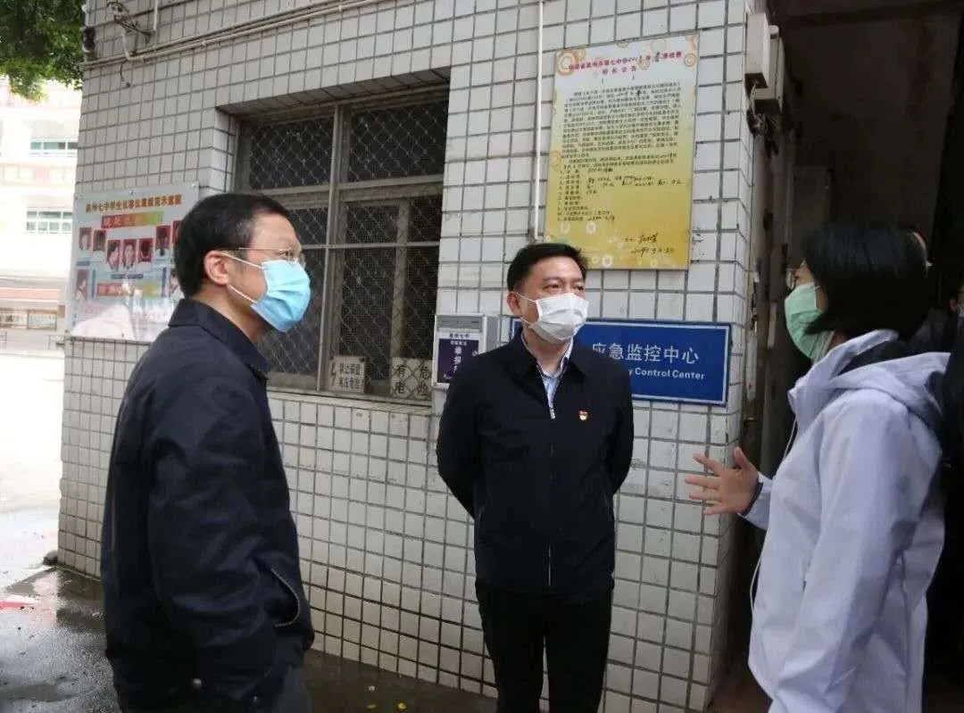3月28日,鲤城区委副书记王明元带领区委办、区教育局、区公安分局、区疾控中心等相关部门负责同志就我校高三返学前各项准备工作进行检查指导。鲤城区教育局局长陈东辉、公安分局副局长张汉辉、区委办副主任、党支部书记詹敬东、教育局副局长黄志勇、区疾控中心应急与传染病防制股股长黄凯彬等领导陪同检查。 王明元一行认真听取庄月芳校长关于疫情防控和开学准备工作汇报,实地查看、体验了校门口设置的热成像仪设备运行情况,检查了教学楼、临时隔离观察室、操场等重点区域,详细了解我校关于师生信息排查、校园消毒防疫、防疫物资储备、师生返校、应急预案等开学准备工作情况。 王明元对我校落实一系列有力有效的防疫措施给予肯定,要求我校进一步完善应急处置预案,严格按要求落实好环境消杀、物资配备、隔离设置、食宿管理等各项防控措施。坚决守护好师生生命安全和身体健康,确保高三年开学安全有序。