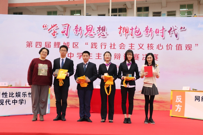 除此外,我校晦鸣辩论队四辩庄梓煊同学还获得总决赛“最佳辩手”称号,二辩林洋洋同学获得单场“最佳辩手”称号,戴娇娜、孙贻莲、邓伟华、魏萍、陈怡等五位老师获得“优秀指导老师”称号。