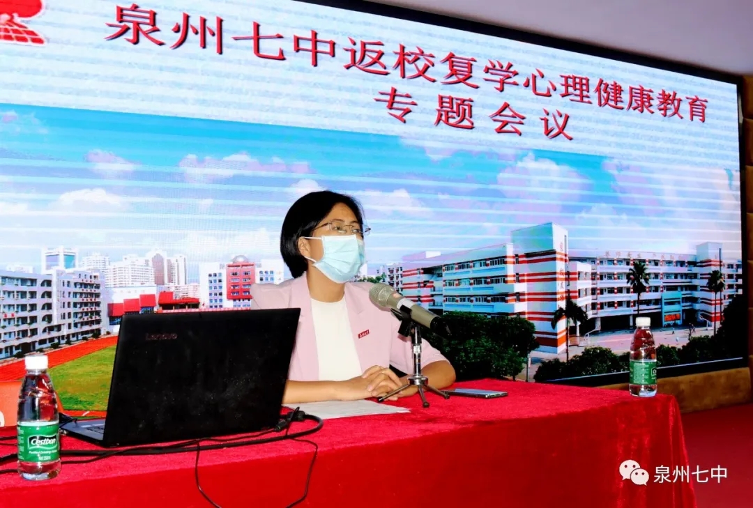 学校专职心理教师林小娜结合心理普查报告,分析高中生常见心理问题,针对复学的适应问题提出建议。尤其是疫情之下的生命健康教育,各班要继续强化生命意识,指导学生珍爱生命,教会学生利用社会资源、心理热线,寻求专业的心理援助。
