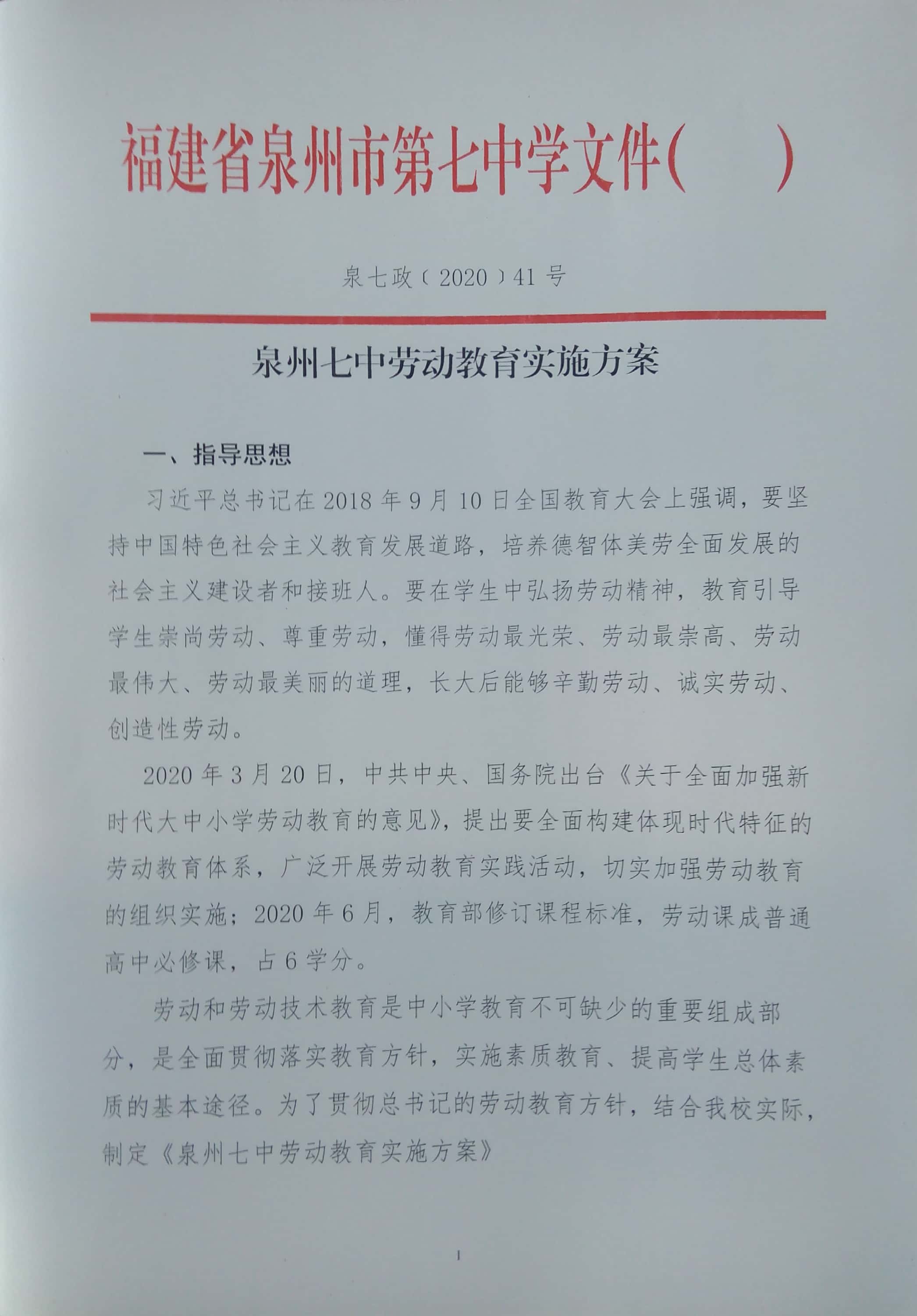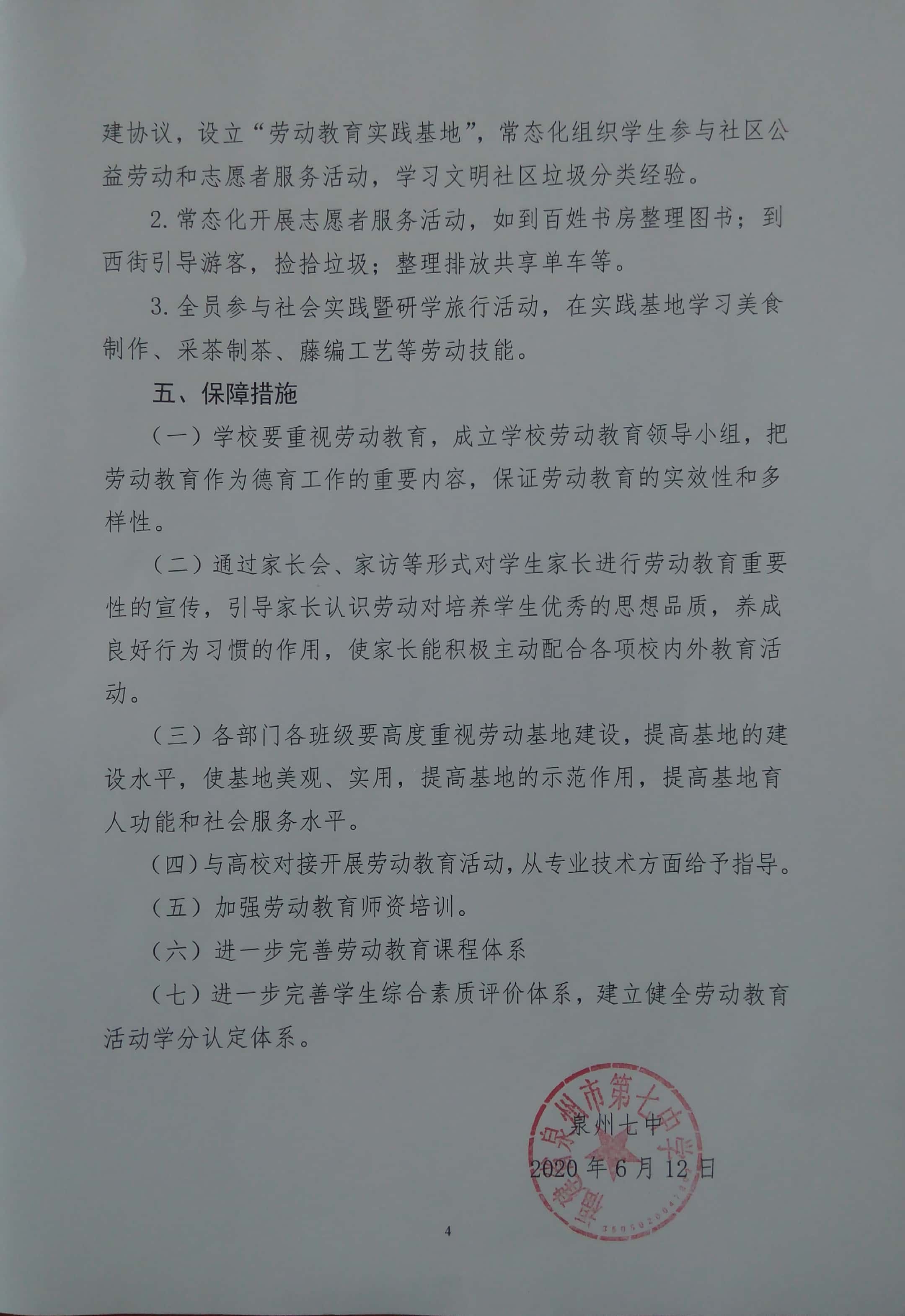 泉州七中劳动教育实施方案
