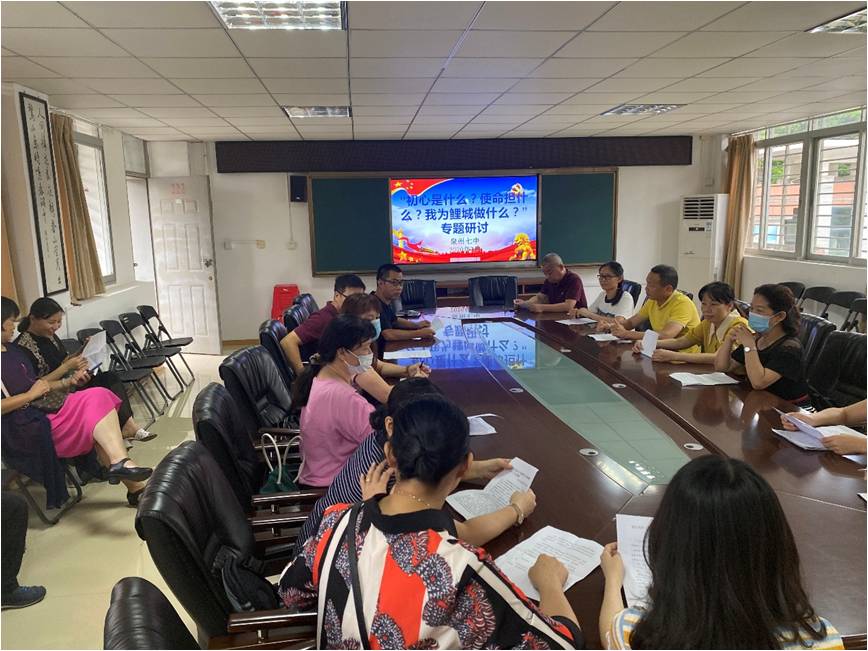 7月1日下午,为纪念建党99周年和深入学习贯彻习近平新时代中国特色社会主义思想,巩固拓展“不忘初心、牢记使命”主题教育成效,进一步增强凝聚力、战斗力和号召力,泉州七中党总支先后开展上党史知识党课活动和“初心是什么?使命担什么?我为鲤城做什么?”主题研讨学习活动。