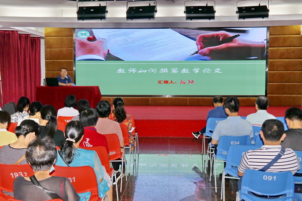 7月15晚,我校邀请晋江市侨声中学副校长、特级教师张鹉老师莅校召开教师论文指导讲座,全校专任教师参加了本次讲座,讲座由教研室主任杨利老师主持。