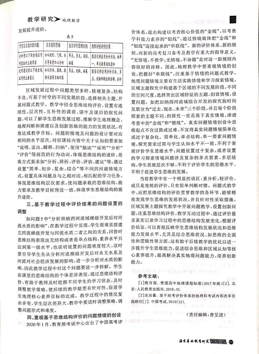 202005邓伟华《基于思维结构评价的区域主题问题式教学研究——以美国田纳西河流域的综合开发为例》