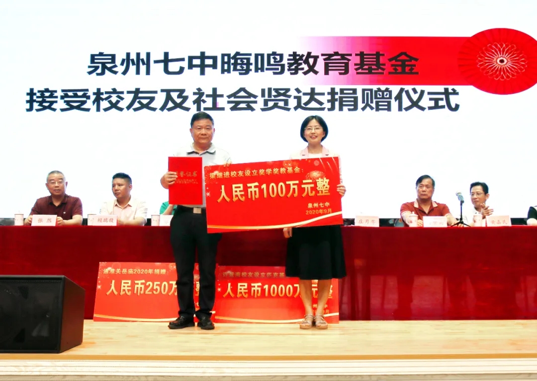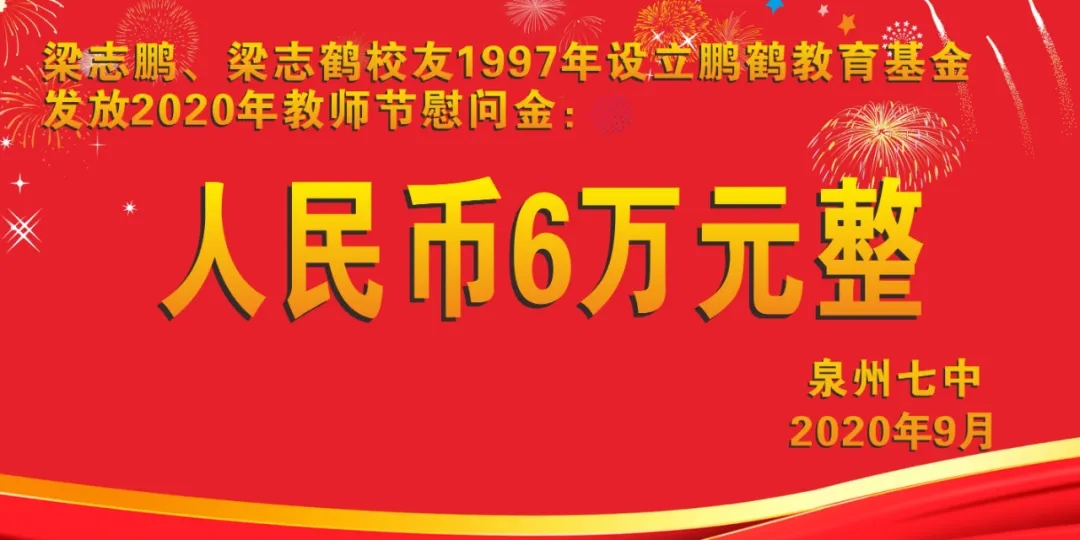 梁继进校友设立奖学奖教基金100万元,用于奖教奖学,2020年出资12万元用于教师节慰问。