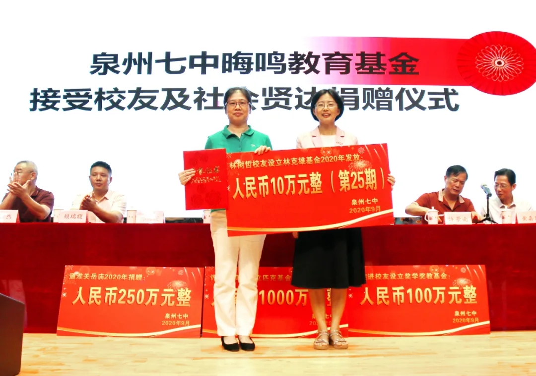 林树哲校友于1996年捐赠100万元设立林克雄基金,每年发放年息10万元奖教奖学,2020年发放第25期。