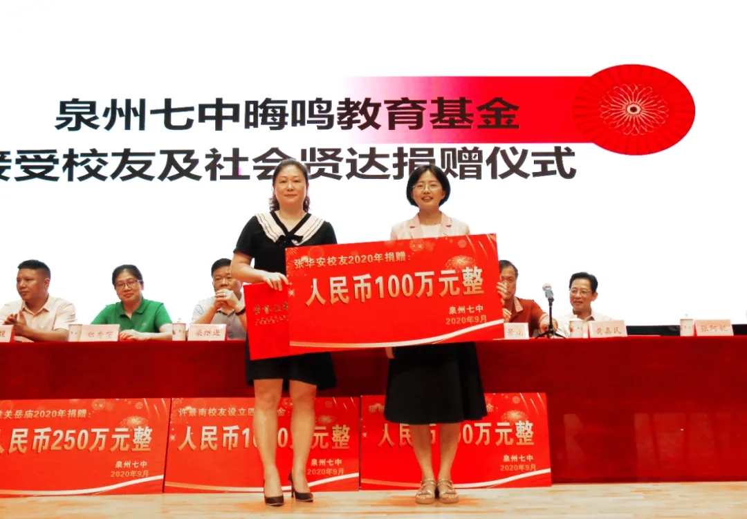 张华安校友2020年捐赠100万元,用于奖教。