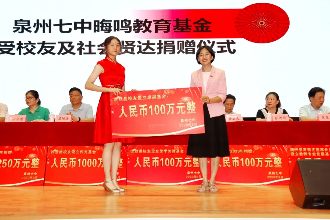 洪晶晶校友设立卓越基金100万元,每年5万元用于奖教奖学,2020年追加6万元用于教师节慰问班主任。