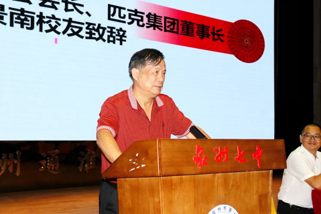 许景南校友表达了对母校当年培养的感恩之情,肯定了七中在几任校长领导下稳步发展,感谢社会对七中的关注以及区委、区政府对七中的重视,感谢母校全体老师发扬七中精神,立德树人、敬业奉献,才有了中、高考和竞赛的捷报频传。许景南校友表示,校友会将一如既往、不遗余力地支持母校发展。