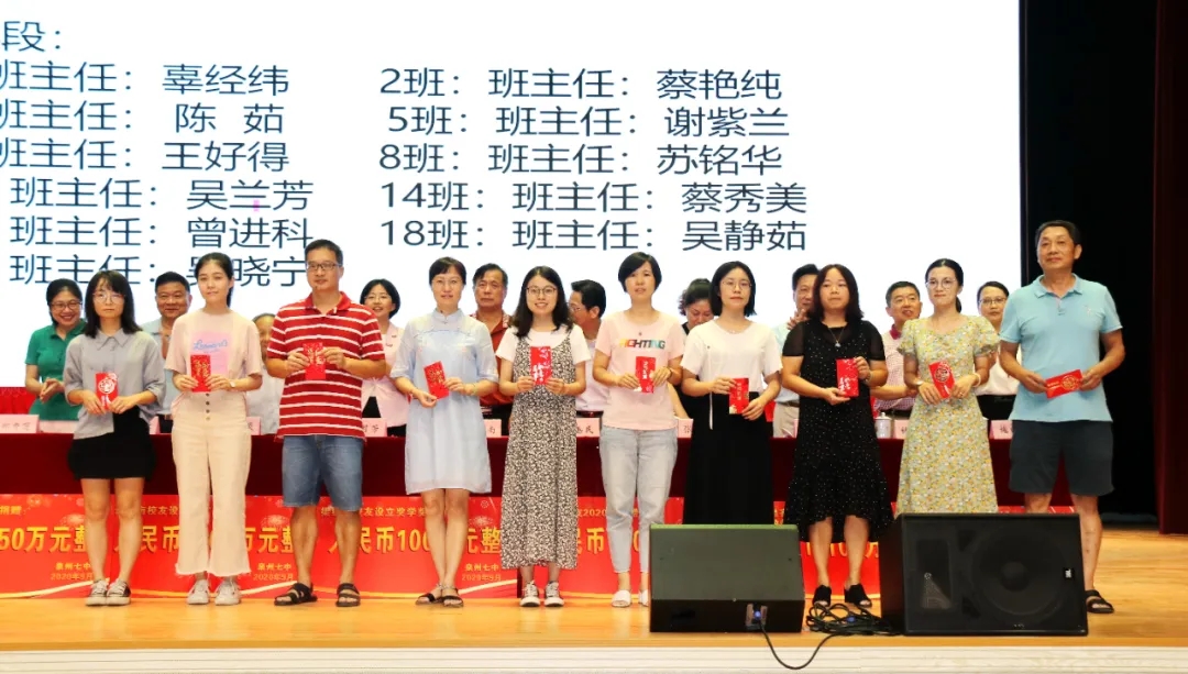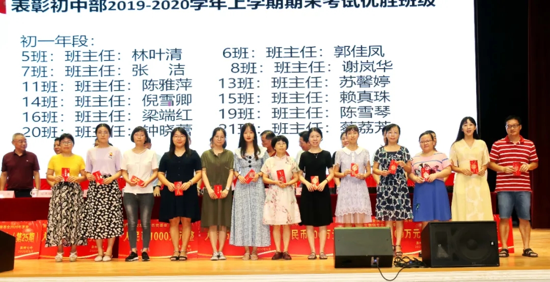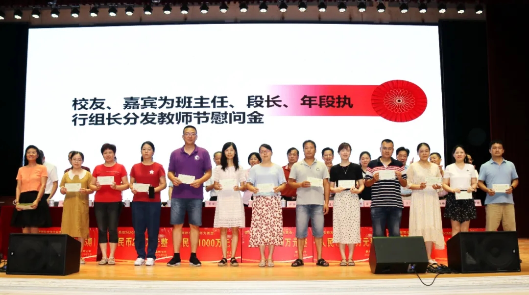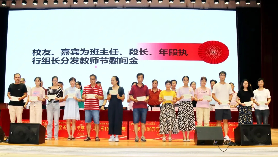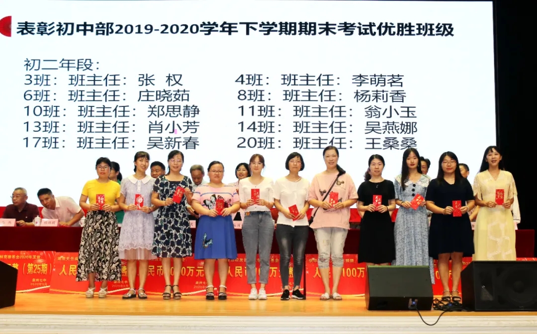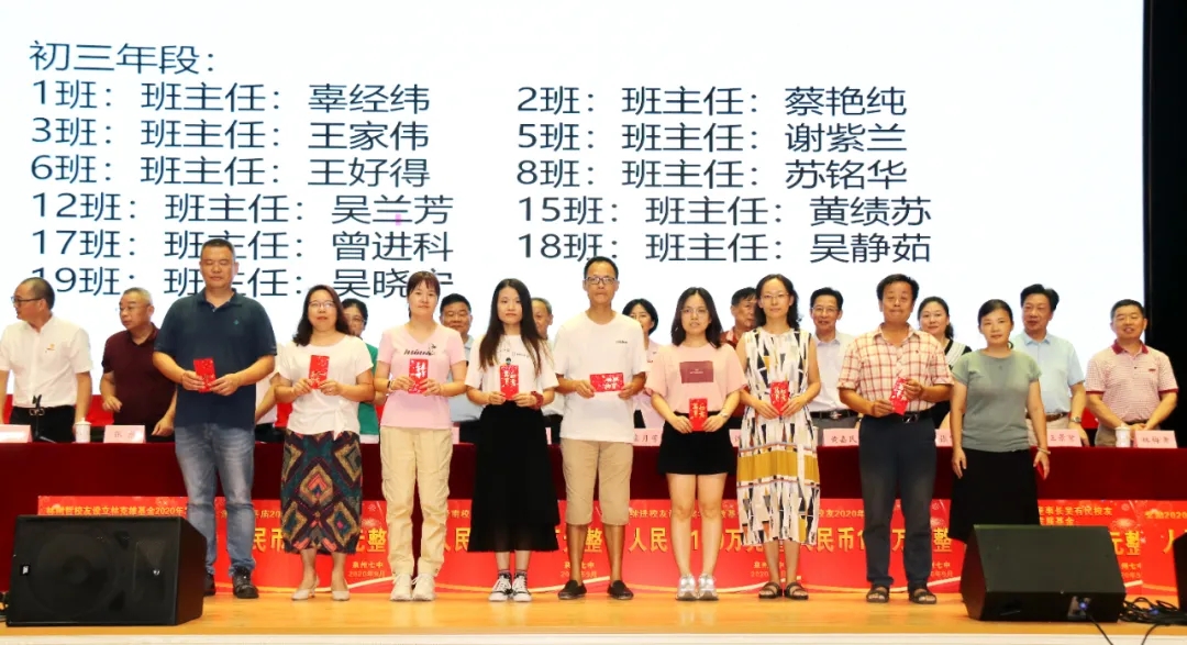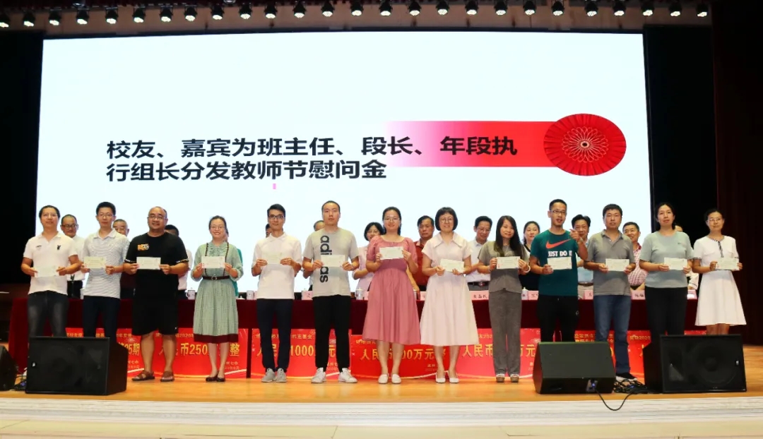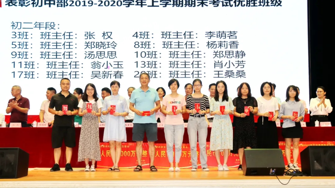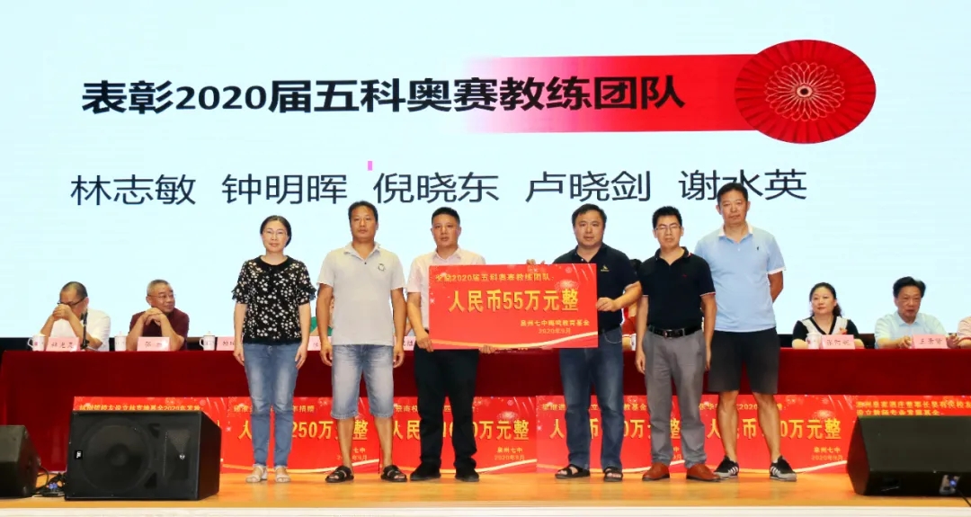 会上奖励2020届高考清北教师团队18万元,奖励2020届高三教师团队125万元,奖励2020届中考状元团队10万元,奖励2020届初三教师团队69万元,奖励2020届五科奥赛教练团队55万元;还奖励现任班主任、段长、执行组长、五科奥赛教练、科技创新指导老师、2021届初三、高三培优团队及初中部2019—2020学年上学期、下学期期末考试优胜班级19万元。