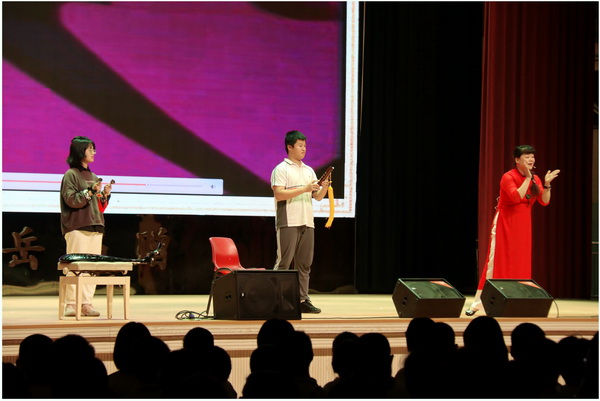 郑芳卉老师围绕南音的历史及影响、记谱形式、演奏形式及南音内容等四个方面,进行了详细讲解。她不仅现场演绎了多首经典的南音名曲,还邀请在场学生亲自上台感受南音乐器,通过聆听、学唱、演奏等直观形式与年轻的心灵产生接触和碰撞,领略中华传统文化内在魅力。活动结束后,不少同学意犹未尽,不舍放下手中的乐器……