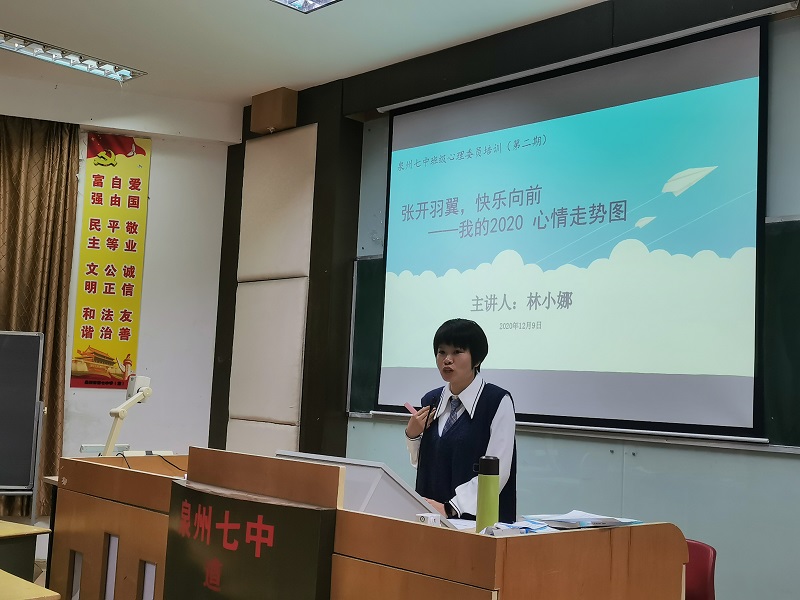 12月9日下午,学校专职心理老师林小娜对高一、高二年的班级心理委员进行第二期专题培训。