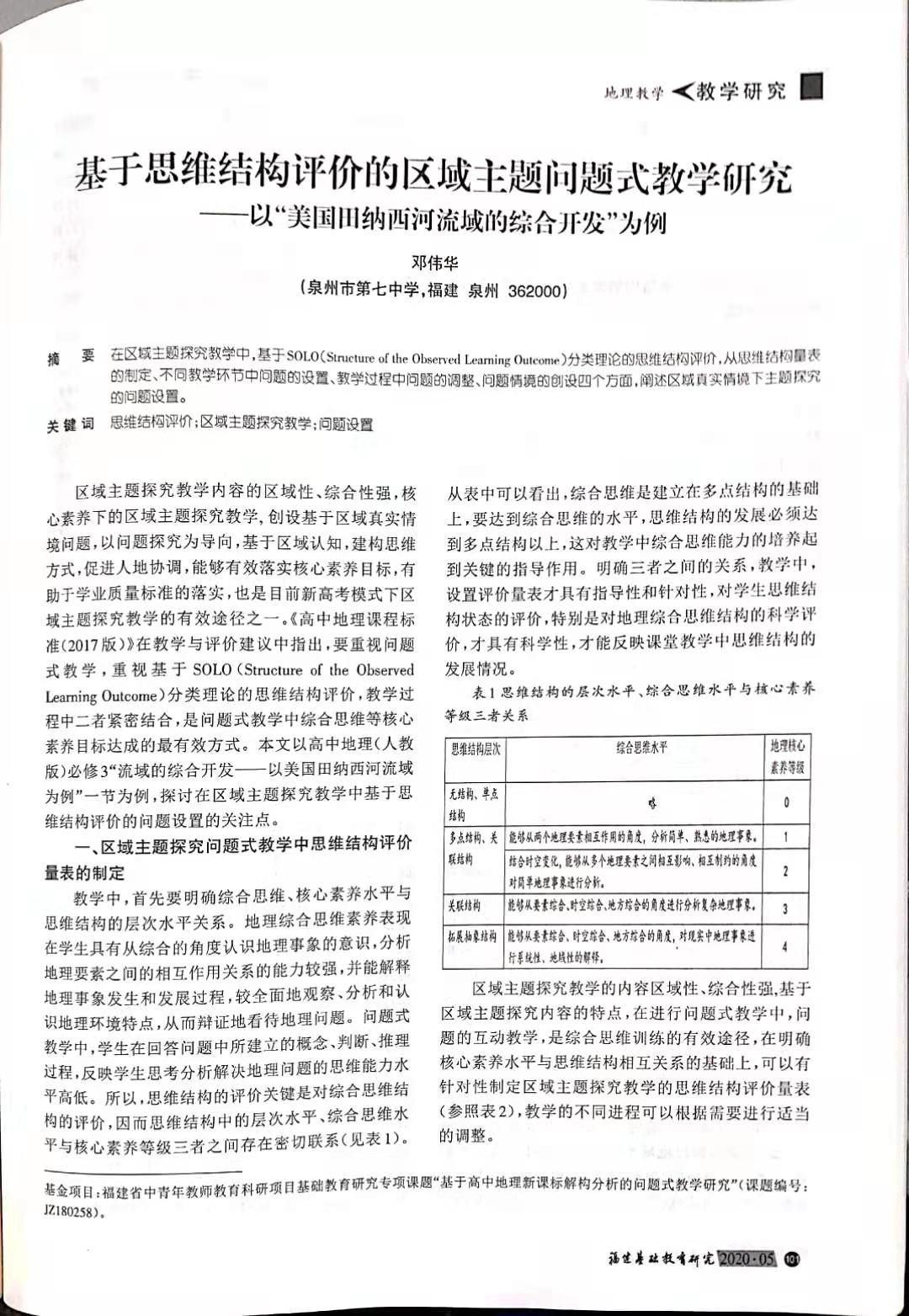 202005地理组邓伟华《基于思维结构评价的区域主题问题式教学研究——以美国田纳西河流域的综合开发为例》