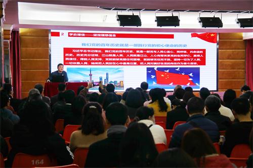 在讲座中,吴鹏飞书记紧紧围绕学习领会习近平总书记关于党的历史的重要论述,结合百年未有之大变局中中国共产党领导人民取得巨大成就,全面讲解了我们党百年奋斗的光辉历程和历史性贡献,结合目前存在的历史虚无主义对我们尤其是青少年学生的危害,深刻阐述了开展党史学习教育对继承和发扬革命传统、党的优良作风,对提高认识能力和处理实际问题能力的重大意义。他还深入浅出地帮助全体党员教师理解“学史明理——坚持理论创新”、“学史增信——坚定理想信念”、“学史崇德——传承伟大精神”和“学史力行——不断提高能力水平”这四项重点任务。