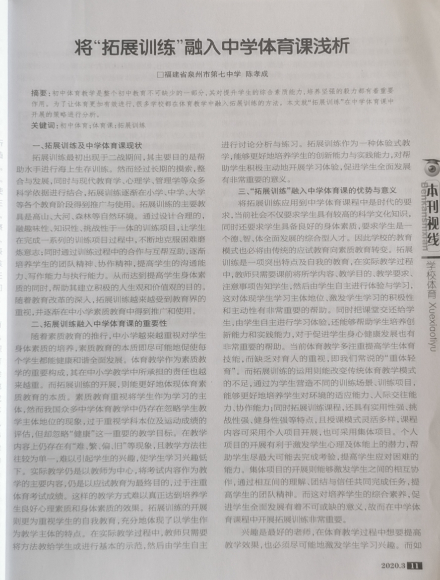 202003陈孝成《将拓展运动融入中学体育课浅析》
