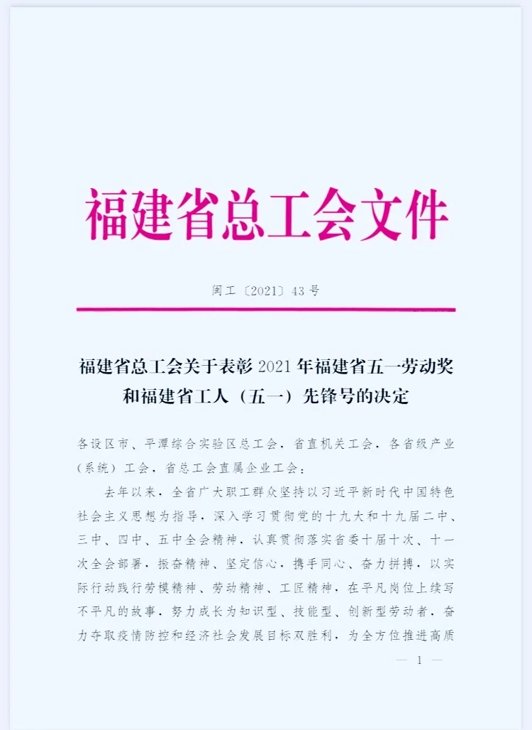 近日,2021年福建省五一劳动奖和福建省工人(五一)先锋号名单揭晓(闽工[2021]43号文),我校林瑞河老师荣获2021年福建省五一劳动奖章。此前,林瑞河老师连续荣获鲤城区、泉州市五一劳动奖章。