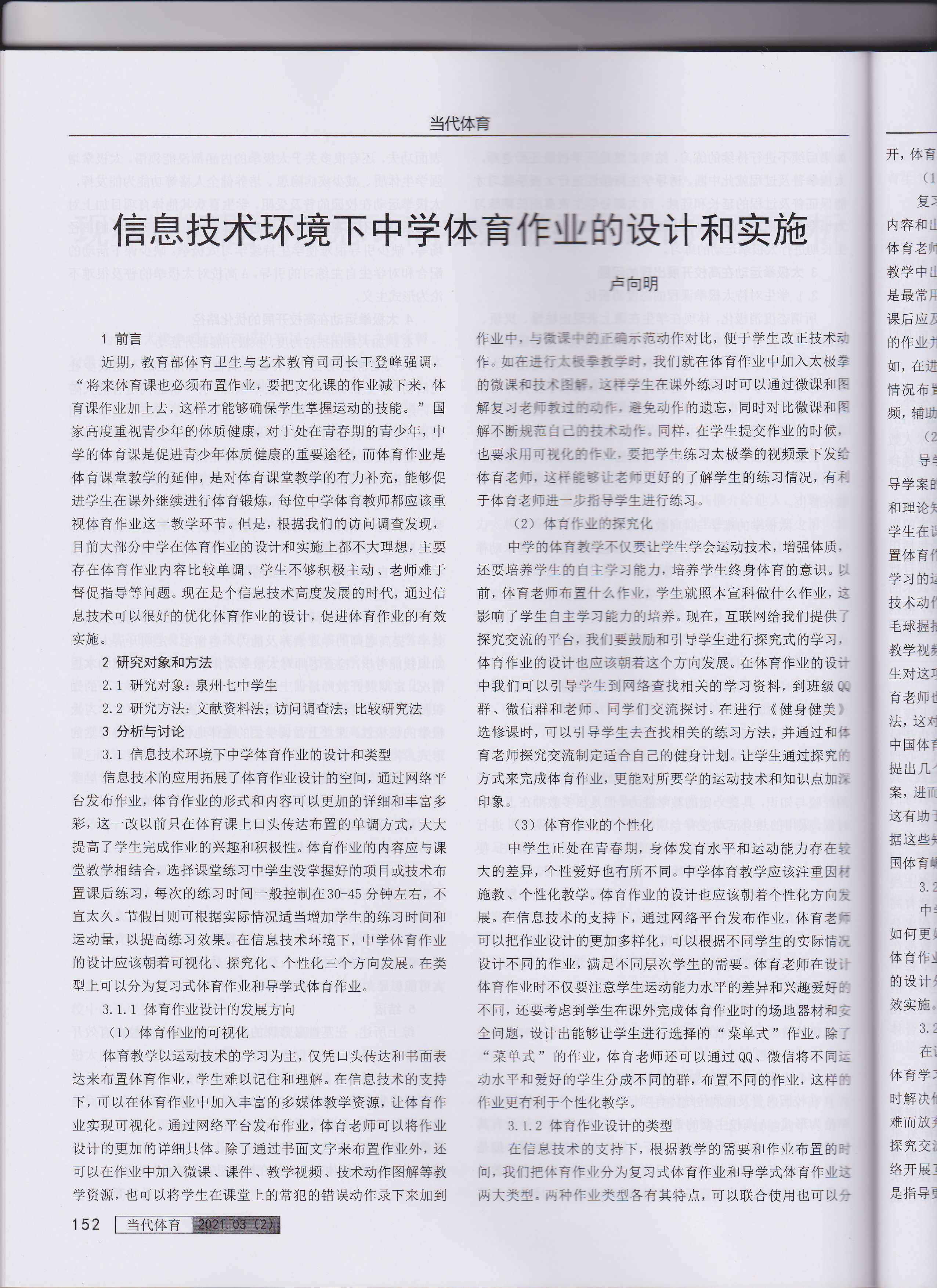 202103卢向明《信息技术环境下中学体育作业的设计和实施》