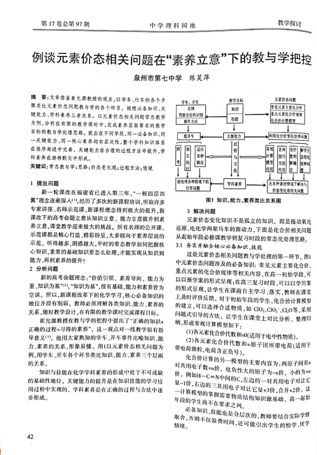 [化学组]陈昊萍《例谈元素价态相关问题在“素养立意”下的教与学把控》
