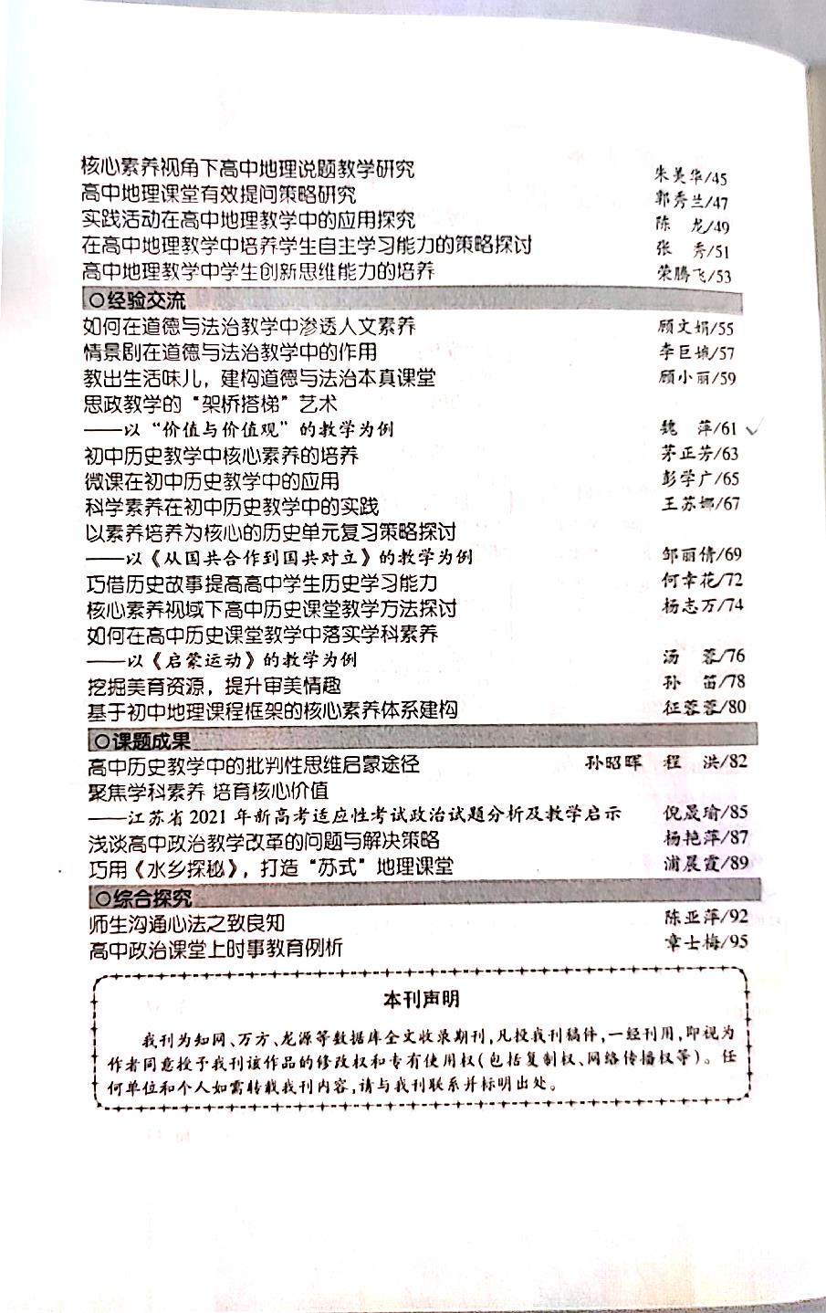 202108政治组魏萍《思政教学的“架桥搭梯”艺术--以“价值与价值观”的教学为例》
