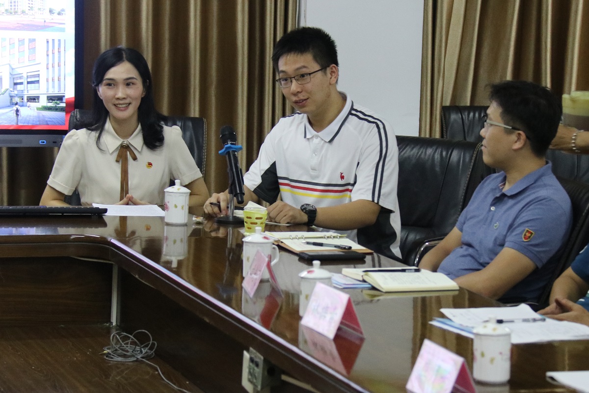 在随后的座谈中,陈训明副书记一行听取了我校的团建工作汇报。我校团委书记林岩老师就我校团建工作取得的成绩、富有特色的志愿服务活动及社团活动进行了简要的汇报。我校模联社社长庄梓煊也畅谈了自己作为社团干部以来的工作心得。