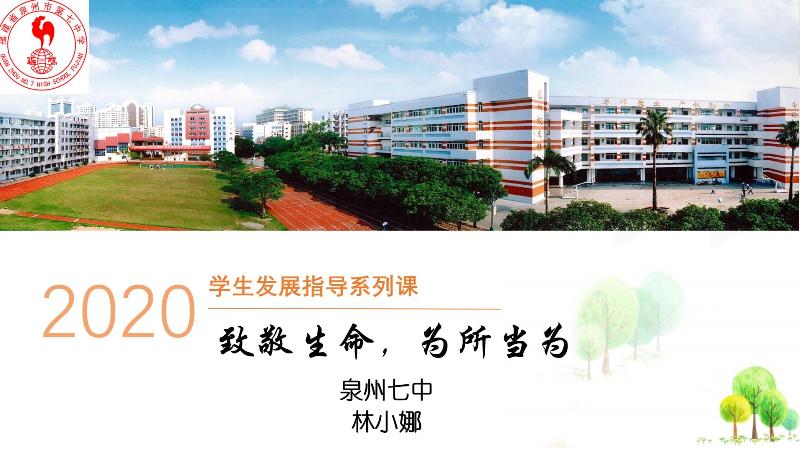 在“停课不停学”期间,我校除了认真做好“线上学科教学”之外,积极开展“线上德育”,这是继“青年大学习”网上团课、“迎难而上 争做勇者”主题班会课之后,结合“生命教育、心理健康教育、生涯教育”开展的学生发展指导系列课之一。学校重视学生身心健康,希望学生德智体美劳全面发展,要把个人和祖国的命运紧密结合在一起,积极践行社会主义核心价值观,立志成为各行各业的领军人物。