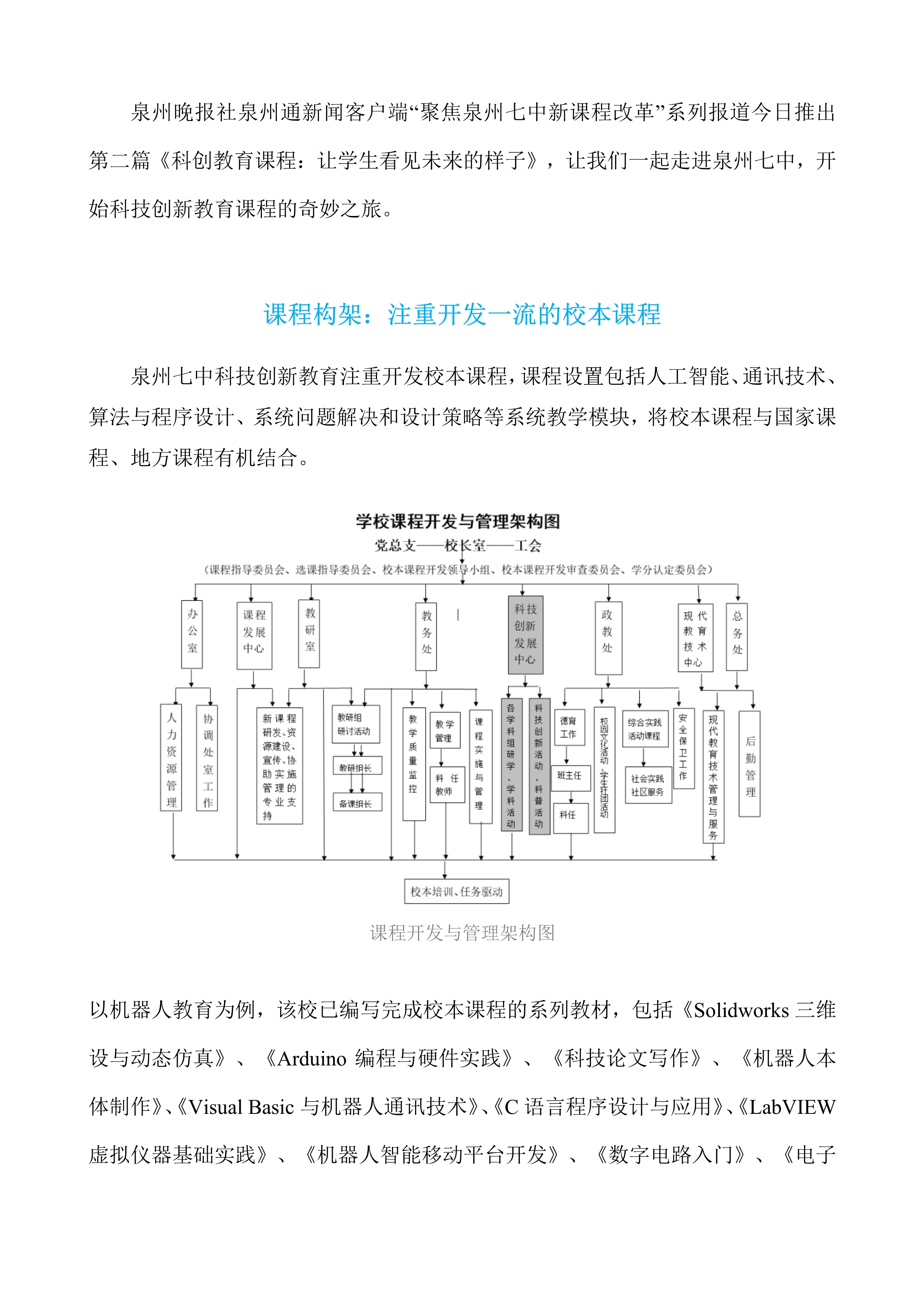泉州七中科技创新教育课程:让学生看见未来的样子