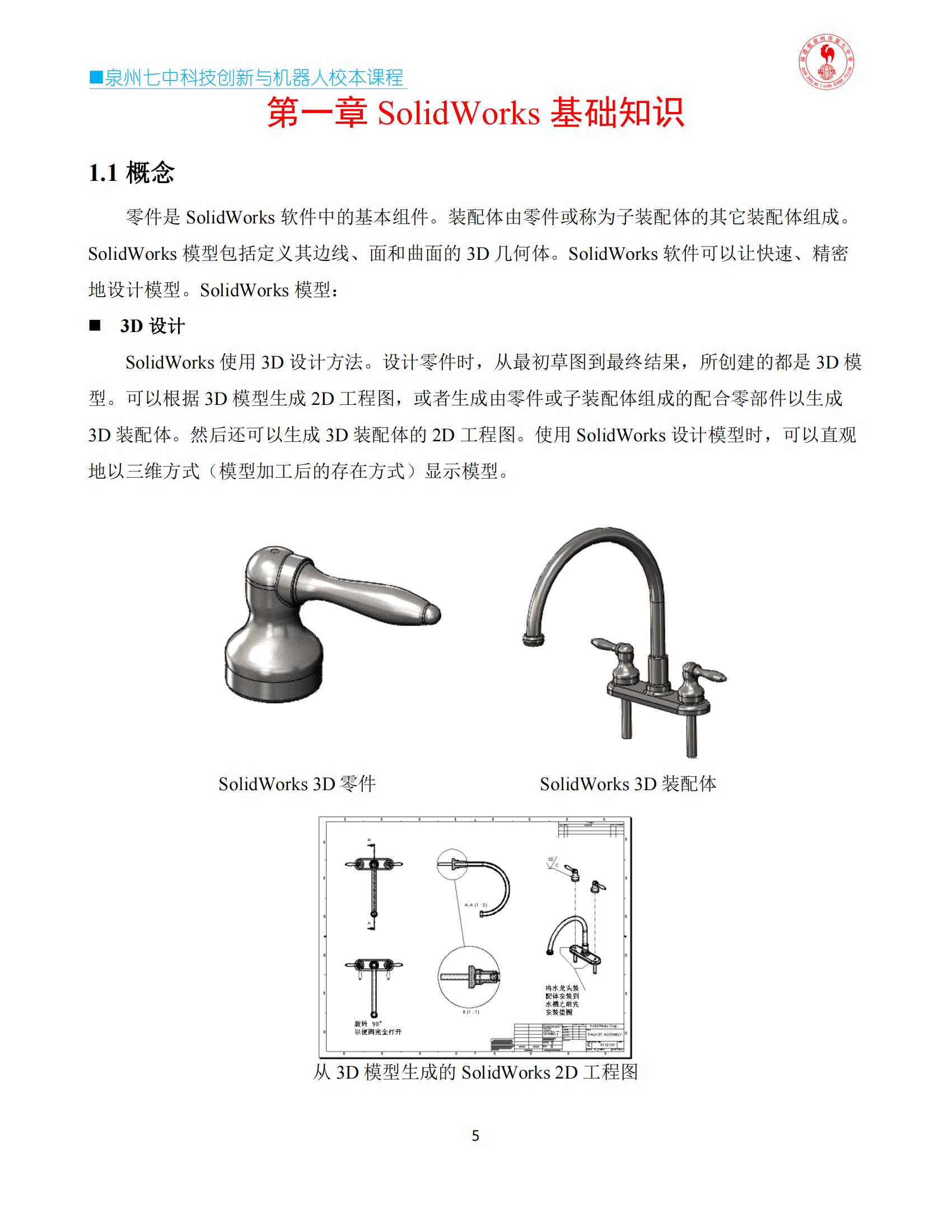 泉州七中科技创新与机器人校本课程模块《Solidworks三维设计及应用》