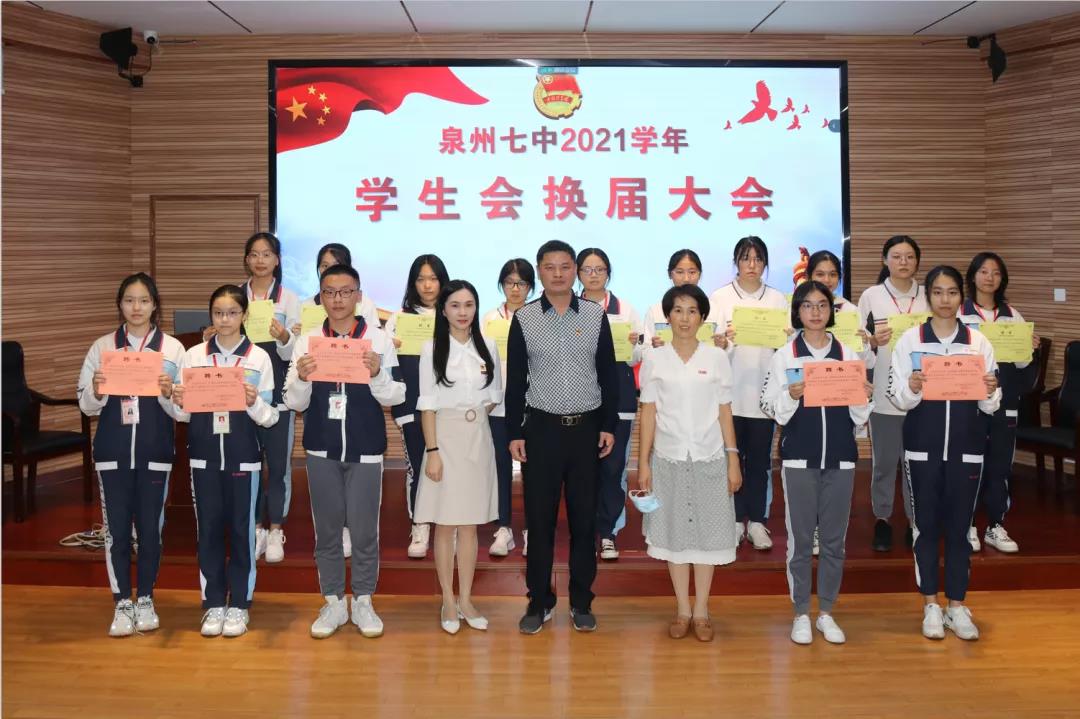 接着,我校召开了2021学年学生会换届大会,确定了新一届学生会干部成员。校长吴鹏飞,党总支副书记黄颖为新一届学生会干部颁发了聘书。团委书记林岩就上一届学生会进行了总结,指出学生干部是学生中的中坚力量,是师生之间进行沟通交流的桥梁和纽带,是实施教育、管理工作的一支重要力量。希望学生干部要找准位置,明确职责,树立起高度的责任感,充分发挥先锋模范带头作用,更好的服务师生。
