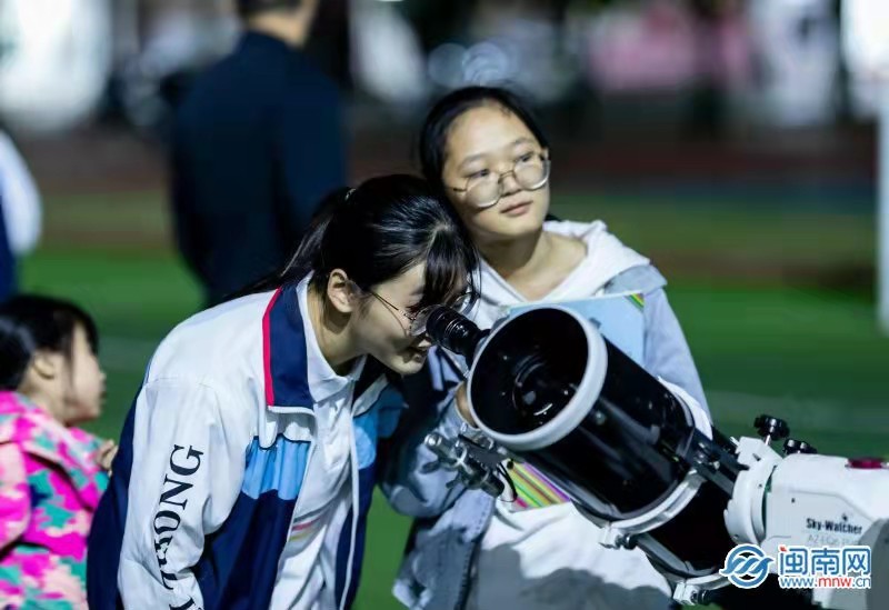 据了解,10月30日是“中国天文日”。当天晚上泉州七中天文社学生们,与来自鲤城区实验小学、传春幼儿园的孩子们,在泉州七中老师们、家长们的陪伴下,在泉州七中学校操场举办天文观测活动。 不同望远镜对准着不同的星体,在强烈的求知欲驱使下,几个望远镜旁大家都排起了长队等待观测。背诵月亮的诗句、月亮有关的闽南童谣、天文知识竞答……大小朋友们,享受了一场天文盛宴。