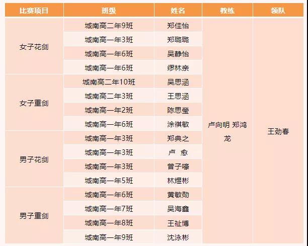 我校击剑队名单