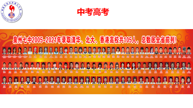 一路砥砺前行,一路探索改革,泉州七中始终勇立时代潮头,不断创新求变。它顺应教育的时代需求,坚持“立德树人,五育并举”的育人理念,坚守“不落下一个学生”的育人承诺,坚信“每一棵树都有它的春天”的育人信念。它专注内涵发展、品质发展的执着,秉持“爱国、感恩、勤奋、卓越”的校训,坚持“培养身心健康的现代中国人,锻造各行各业领军人物”的育人目标。多年来,泉州七中坚持用大课程的理念推动课程改革的实践,崇实守真,创新多元,走出了一条具有七中特色的课程开发之路,形成了独具特色的泉州七中“金鸡百花课程体系”。