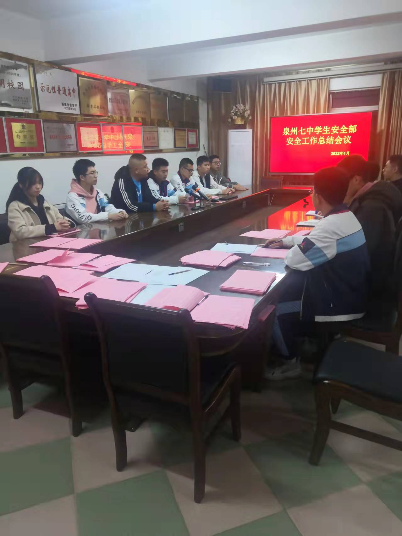 2022年1月14日晚,泉州七中学生安全部在春晖图书楼六楼会议室召开安全工作总结会议,安全部全体成员与校安科老师参加了会议。