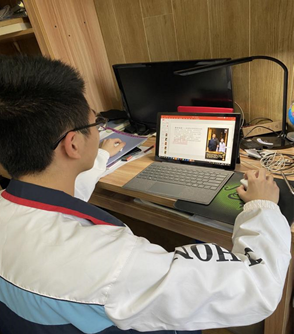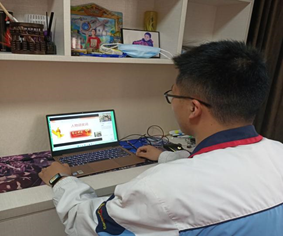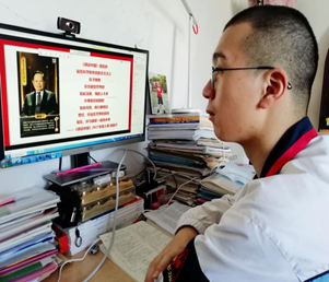 学生居家在线上认真参加主题班会课