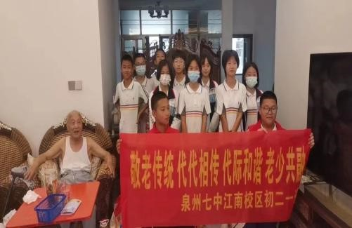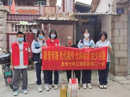 初二10班的同学们来到泉州江南老人颐乐园,为敬老院里的老人们弹琴、打扫卫生、送去节日小礼物;初二5班的家委和同学们分别到白崎社区、高山社区、浮桥社区、王宫社区,慰问所属地的孤寡老人们;初二1班的同学们则重点走访高龄和“空巢”老人家庭……老人们对大家的到来非常感动,纷纷表示感受到社会大家庭对他们的关怀。其中一位百岁老人吴爷爷,感激地说道:“感谢你们来看我,感谢学校,感谢政府。”同学们临走之际向老人家承诺,以后会经常来看望他。活动在和谐温暖的氛围中落下帷幕。