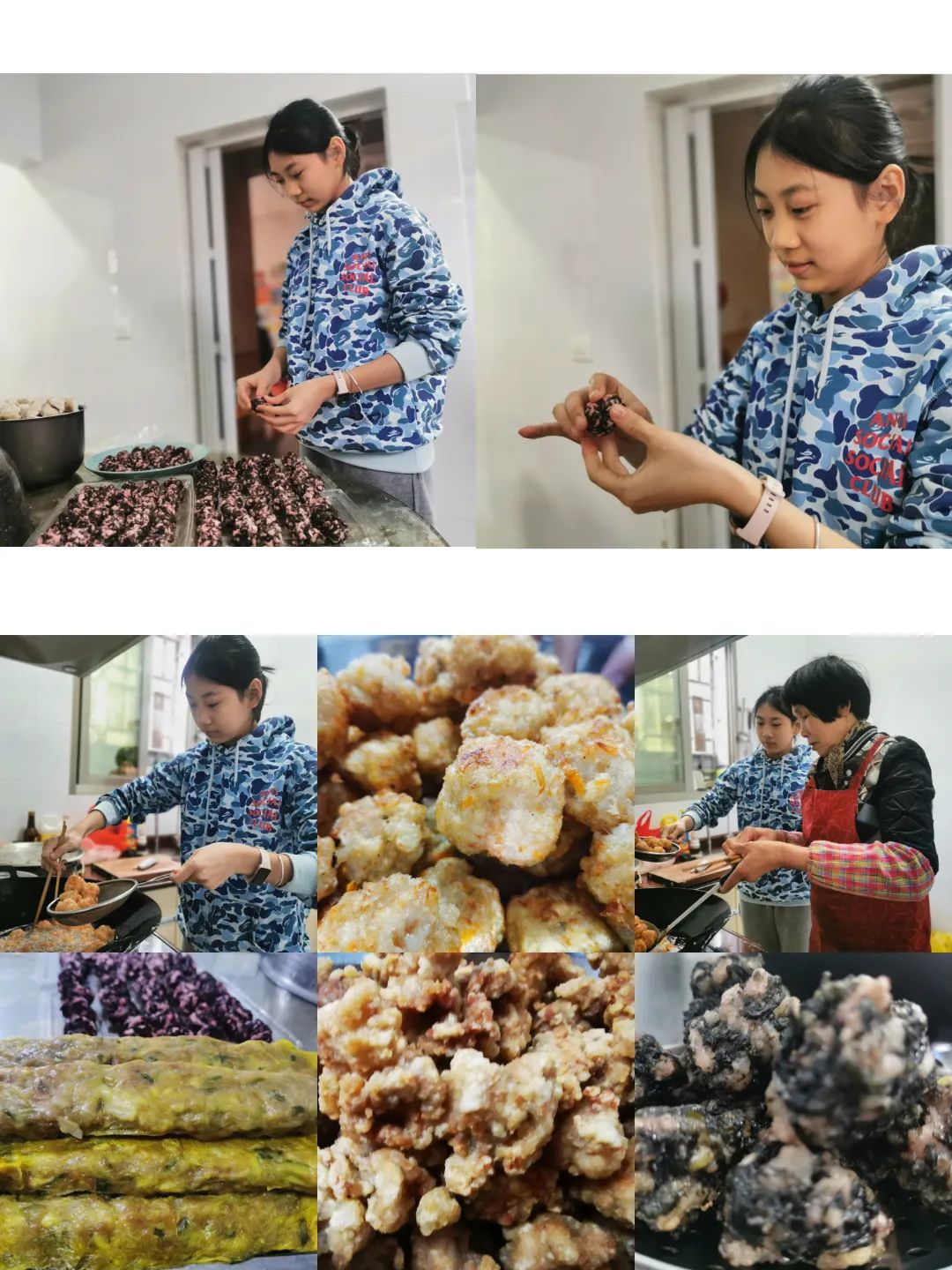 同学们纷纷化身美食达人,挽起袖子,走进厨房,大秀厨艺,包饺子、清蒸鱼、蒸龙虾、炸醋肉、滚元宵......锅碗瓢盆,油盐酱醋,都要经过用心细致的处理,做出一道道美味佳肴,感恩父母,孝敬长辈。不仅体味父母照料的不易,也用烹饪增添年味里的爱意。