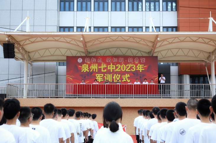 2023年8月26日上午,泉州七中2023级高一新生军训仪式在江南校区操场隆重举行。