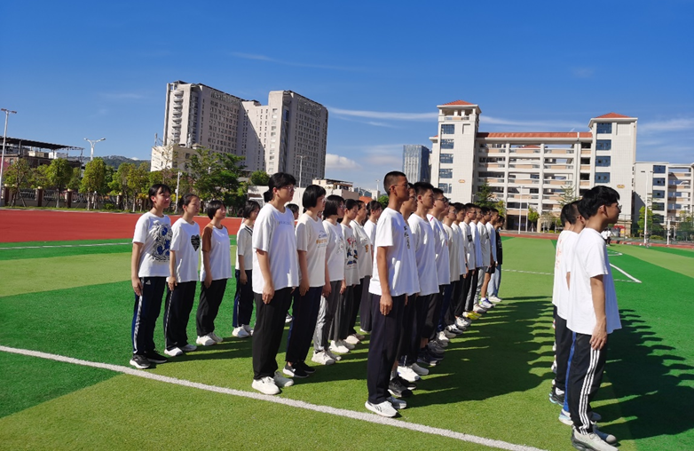 区人武部军事科科长颜闽亮向全体参训同学阐明了军训的目的和意义,希望此次军训能够培养同学们严格的纪律观念、吃苦耐劳的精神、紧张有序的作风,同时增强同学们的国防意识、身体素质和独立生活的能力。