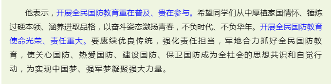 活动现场,虎虎生风的军体拳、情真意切的经典诵读、朝气蓬勃的合唱《少年中国说》等节目依次上演,精彩纷呈,让现场观众接受一场国防教育洗礼,更加深刻地认识到国防教育的重要性,增强了国防观念和国防素养,强化了爱国强军意识和责任担当。