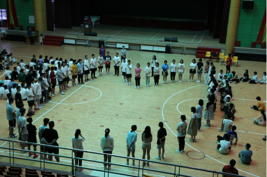 8月8日下午,我校专职心理老师董子英带领鲤城区未成年人心理辅导站“扬帆计划”暑假教育实习生对高一部分新生开展了《少年逐梦,七中启航》团队拓展训练活动。