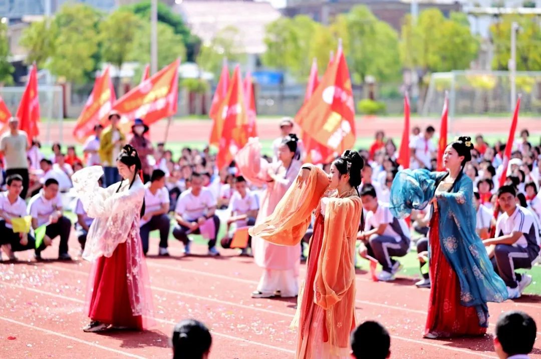 看,一面面鲜艳的国旗迎风招展,国家发展中的一个个里程碑,在方阵中闪亮,同学们用歌舞向祖国献礼,表达浓浓爱国情,彰显赤子之心;宇航员、太空神舟,抒发探索蓝天的航天梦想,展露少年意气;独轮车、武术、刀枪剑戟,飒爽酷炫,活泼灵动,尽显刚健之美;琴瑟和鸣、婀娜舞姿,簪花围闪现泉州元素,马面裙传递文化风采;龙狮腾跃、鼓声昂扬、彩带纷飞......同学们飒爽英姿,斗志昂扬,尽显青春最美的模样。