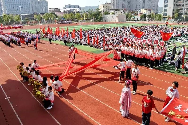 少年当有凌云志,万里长空竞风流。随着国旗队、校旗队的入场,开幕式表演正式拉开帷幕。在学生主持人赖叶馨、刘秀苑、肖诗涵、陈致海的主持下,同学们以班级为单位入场,整齐的步伐踏出目标的坚定,灿烂的微笑书写青春的热情,嘹亮的口号彰显班集体的实力。风采多样的入场方阵表演将运动会的开幕式推向高潮。