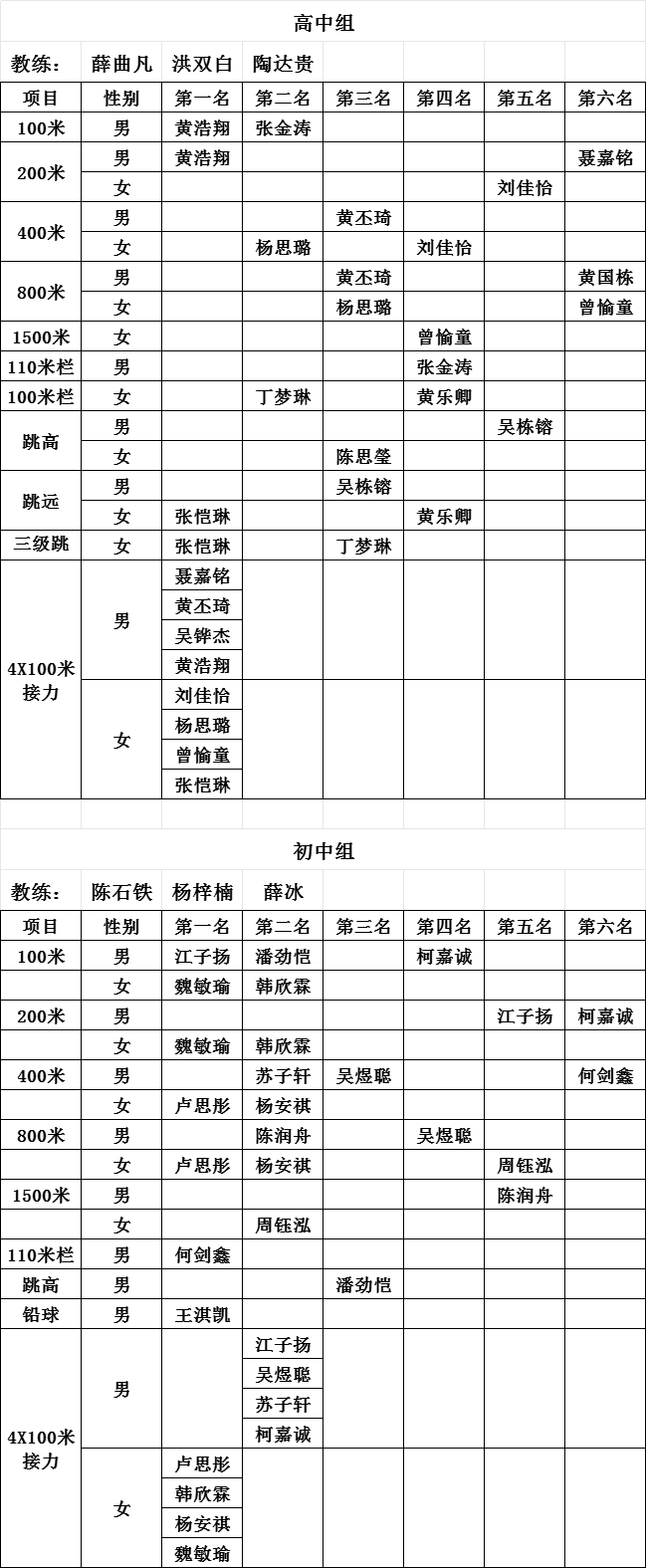 教练及学生各项名次: