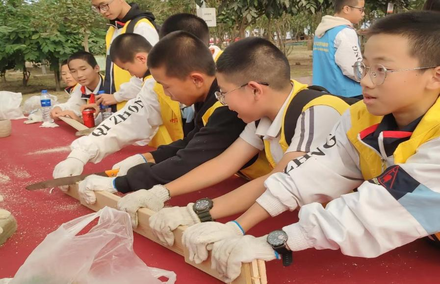 一凿一刻,是少年与匠心的碰撞。在木艺课程中,同学们或锯、或敲、或粘,忙的不亦乐乎。众人拾柴火焰高,每一个看似简单的笔筒,都是齐心协力的成果,都埋藏着克服困难的勇气。